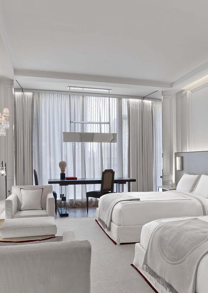바카라 크리스탈 조명기구, 천장부터 바닥까지 이어지는 창문, 그리고 맞춤 제작된 가구가 특징입니다.
